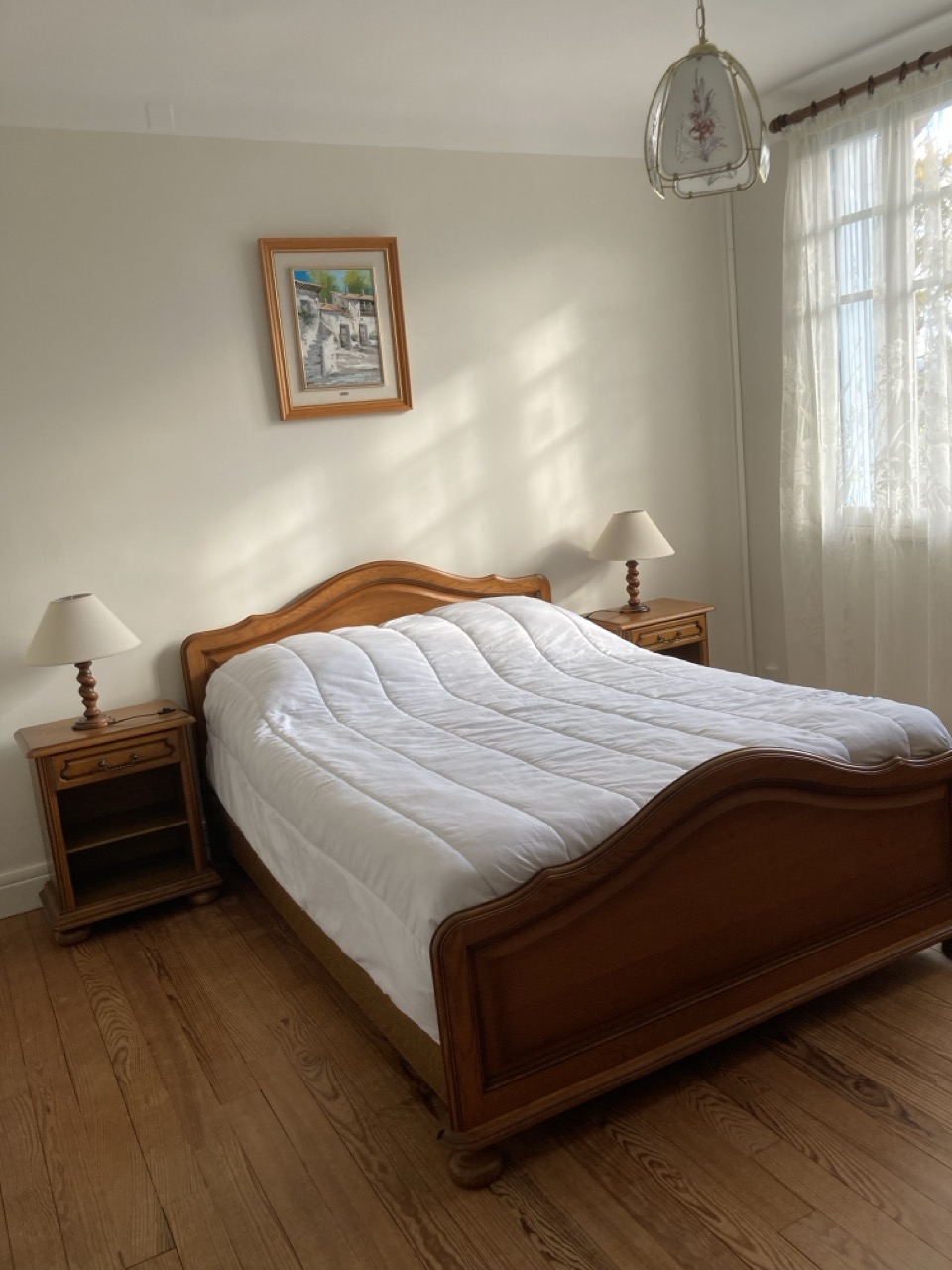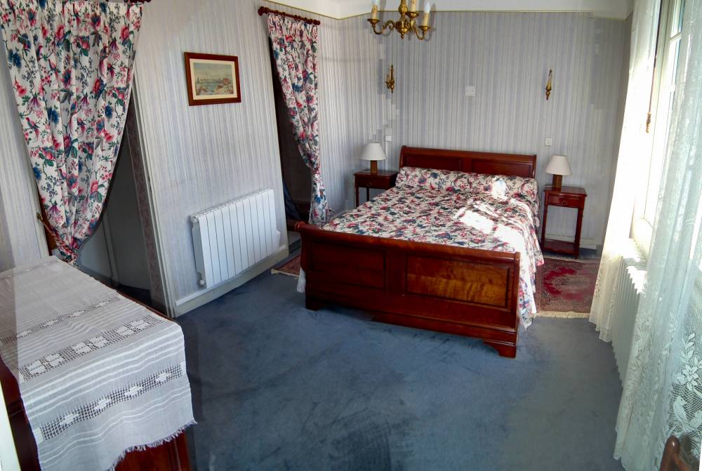 - Chambre 1 « Louis Philippe » (12 m²) exposition est : 1 lit 2 pers en 140, penderie, commode, salle d’eau (douche, lavabo) et WC indépendant.
