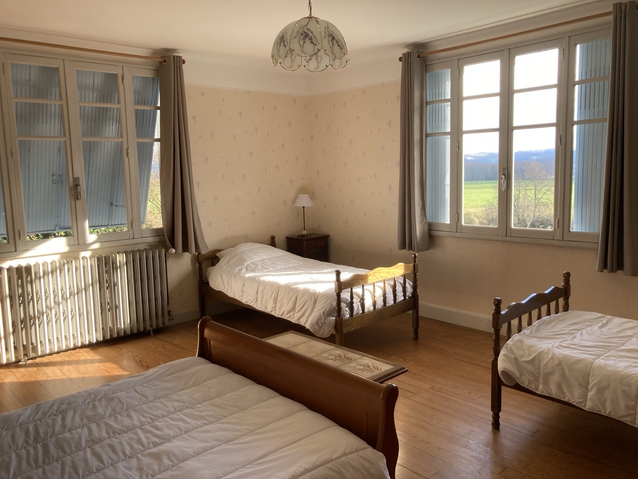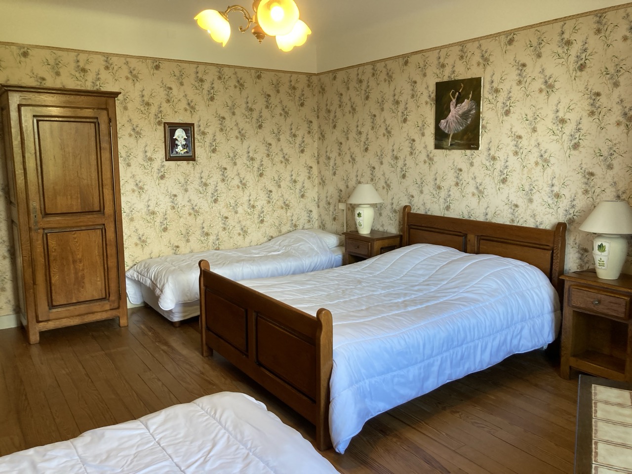 - Chambre 6 « Pierre-Henri » (23 m²) – exposition Est : 1 lit 2 pers en 140, 2 lits 1 pers en 90, armoire-penderie, bonnetière.